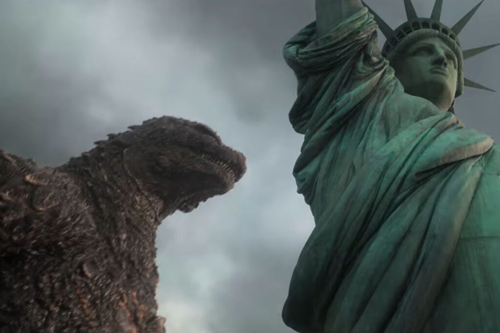 O teaser trailer oferece um vislumbre de uma nova ameaça e termina com uma cena de Godzilla pisando ao lado da Estátua da Liberdade.